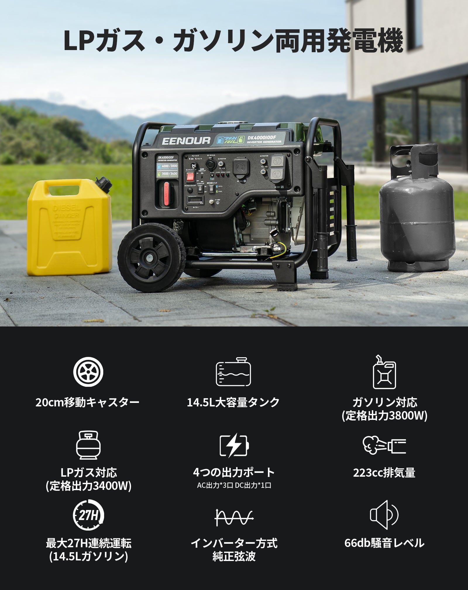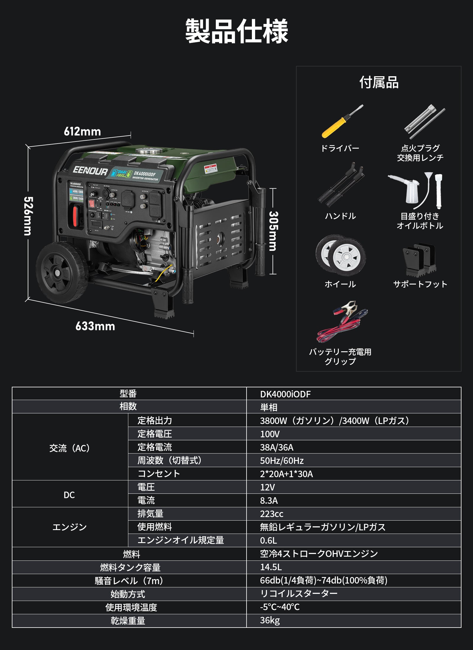 LPG(液化石油ガス)開放型発電機DK4000iODF 製品仕様