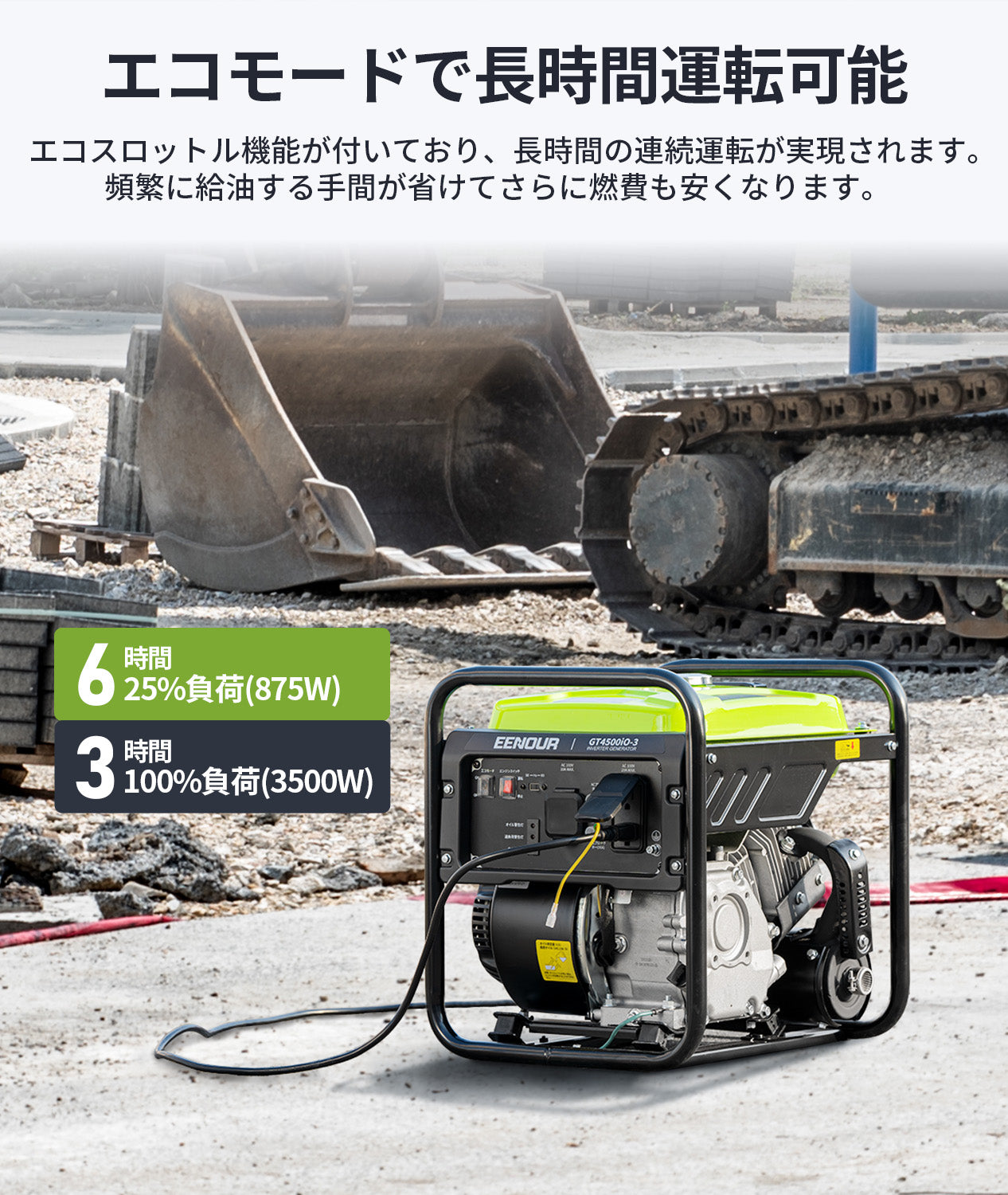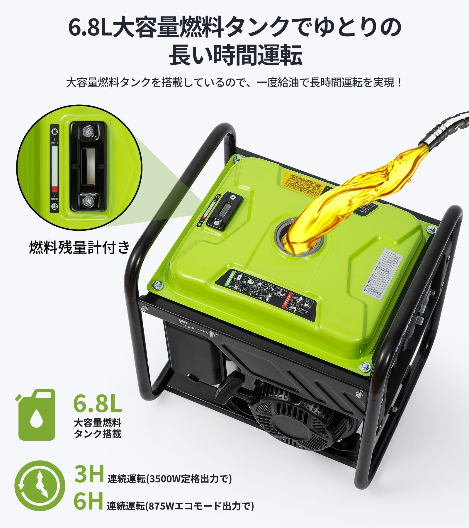 • DK4500iAEFI: 約3時間(定格負荷)〜10時間(1/4負荷)