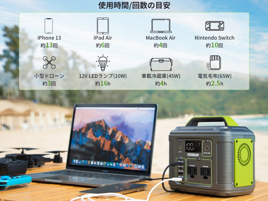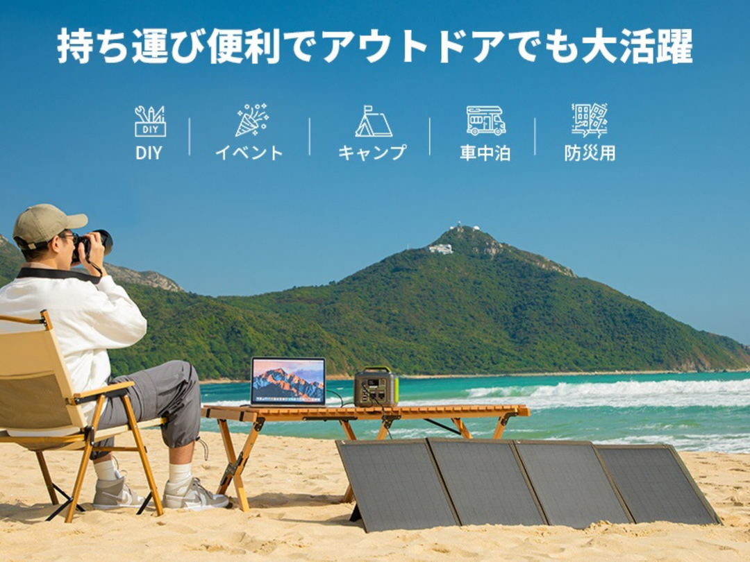 キャンプ、車中泊、災害時の非常用電源、屋外作業、停電対策など、幅広い用途に対応しています。