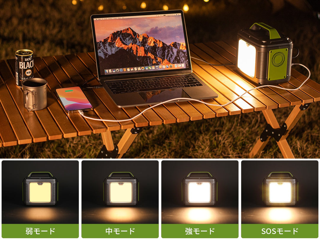 スマートフォン、ノートパソコン、小型家電などの充電・給電が手軽に行え、ソロキャンプや災害時の備えとしても活躍します。
