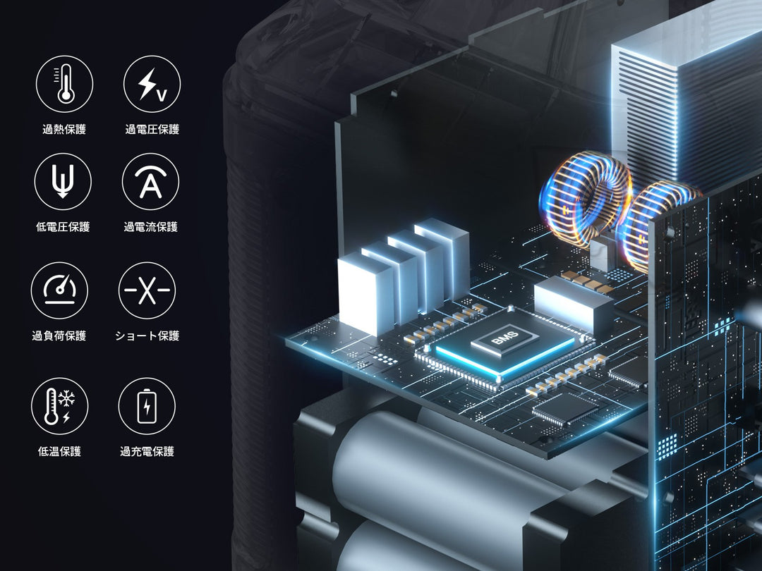 過充電・過放電・過熱・短絡保護などの安全機能を搭載しており、安心して使用できます。