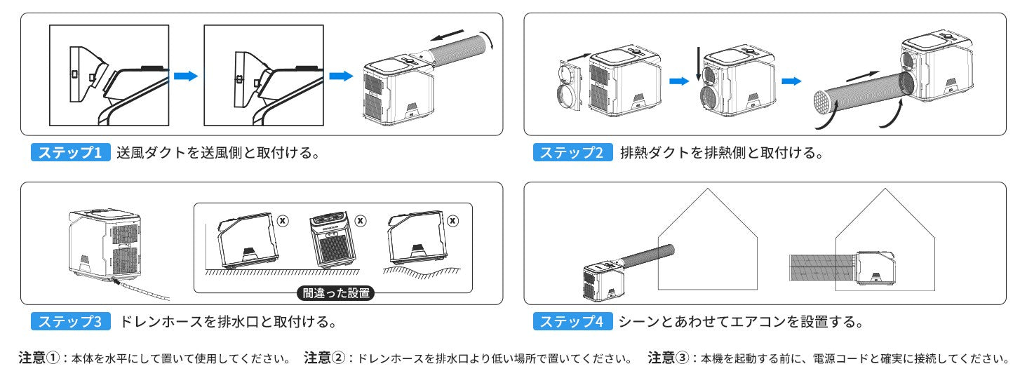 付属の排気ダクトを使って、熱を屋外に逃がす必要があります。