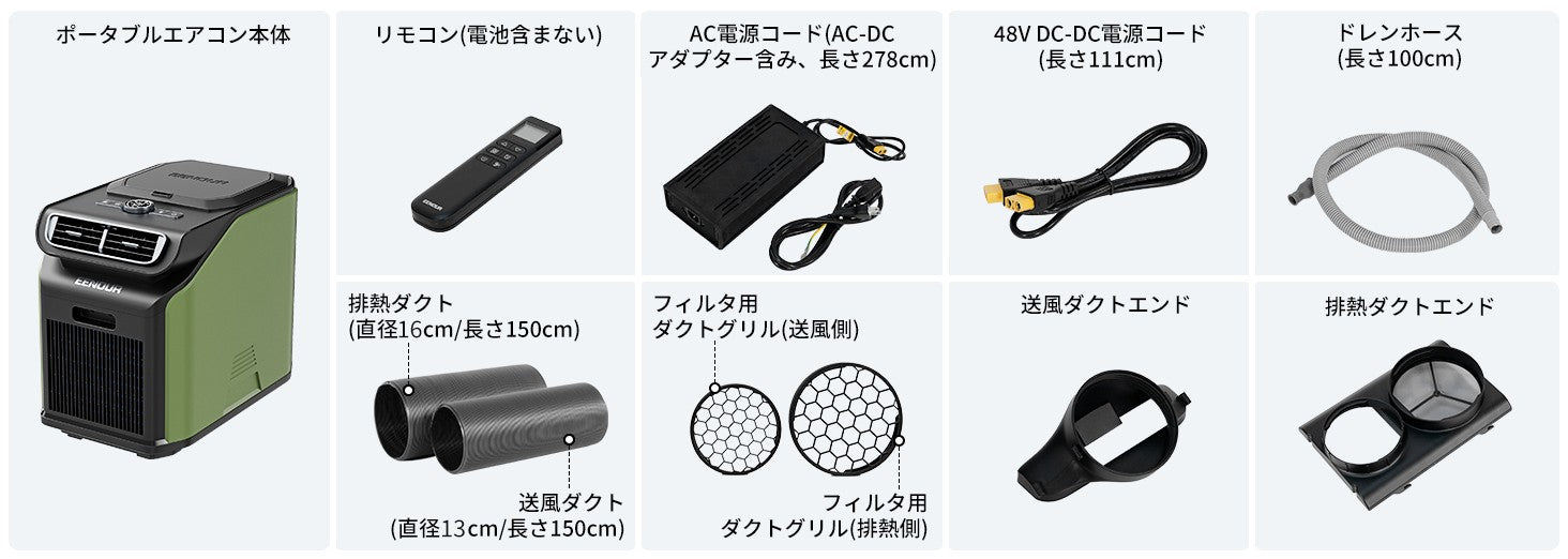 AC100V(家庭用)とDC48V(ポータブル電源)に対応。屋外でも使えます。