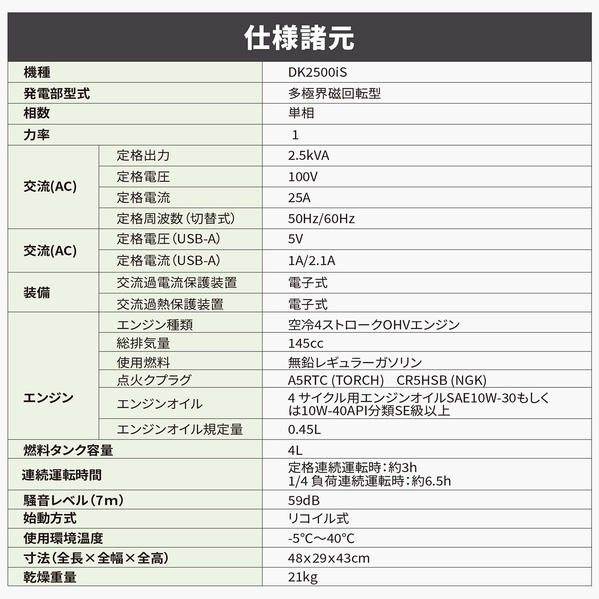 インバーター発電機DK2500iS 2.5kVA/2500W