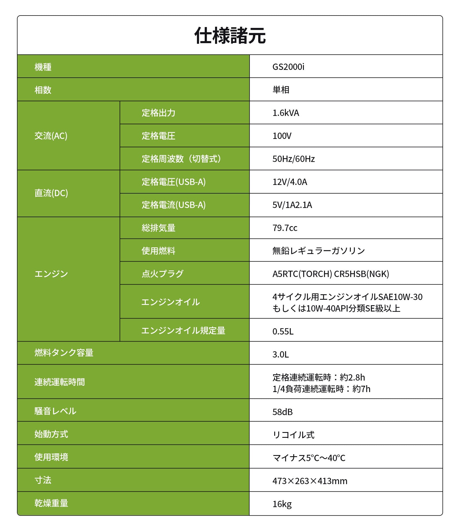 インバーター発電機GS2000i 1.6kVA/1600W