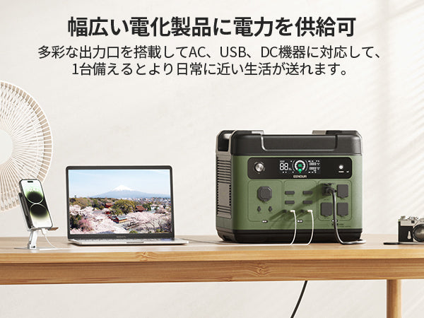 キャンプ、車中泊、災害時の非常用電源、アウトドア作業、停電対策など、屋外・屋内問わず幅広く活用できます。