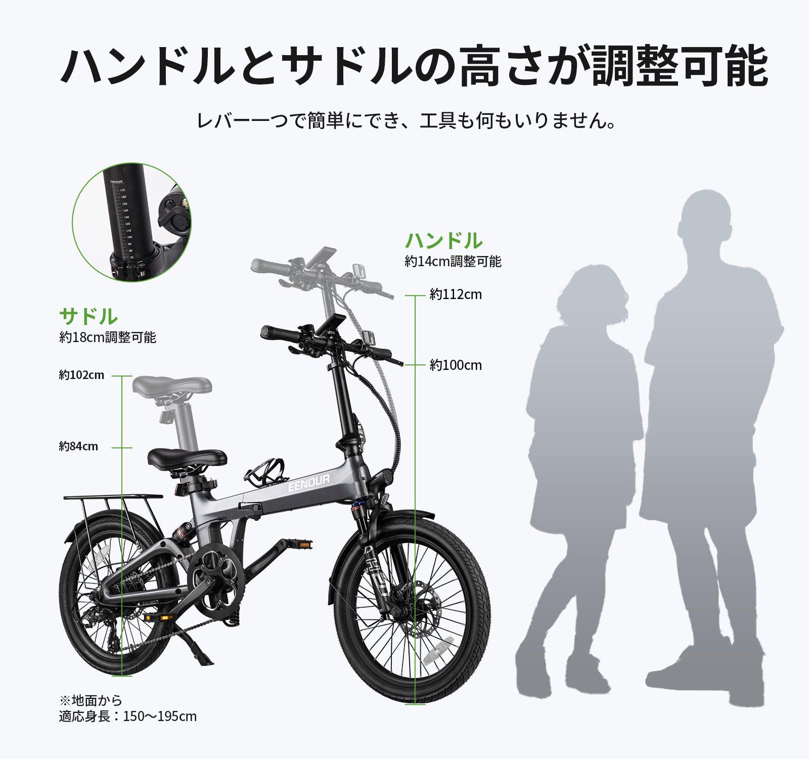 工具不要で10秒以内に折り畳めることができ、軽自動車にも楽々乗せられる電動アシスト自転車です。