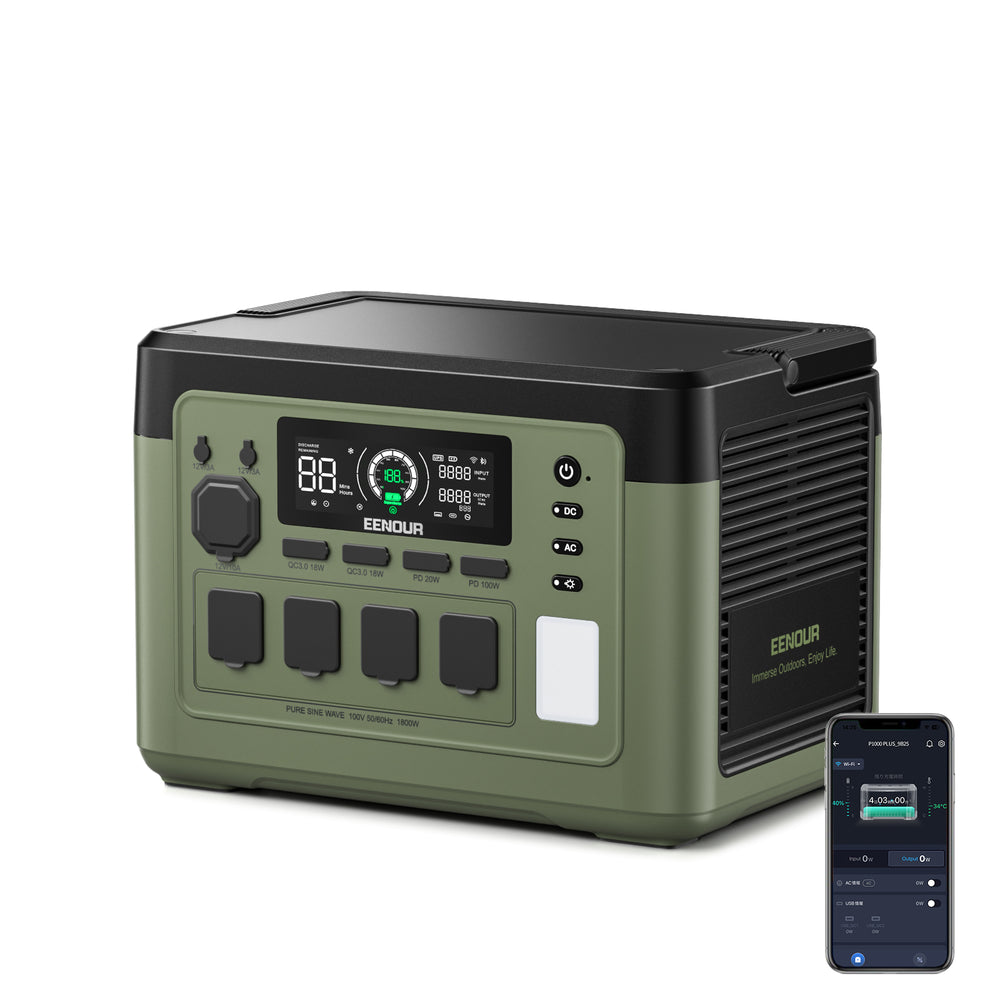約1536Whの大容量で、定格出力1800W、瞬間最大出力3600W。中型家電や複数機器の同時使用にも対応可能です。