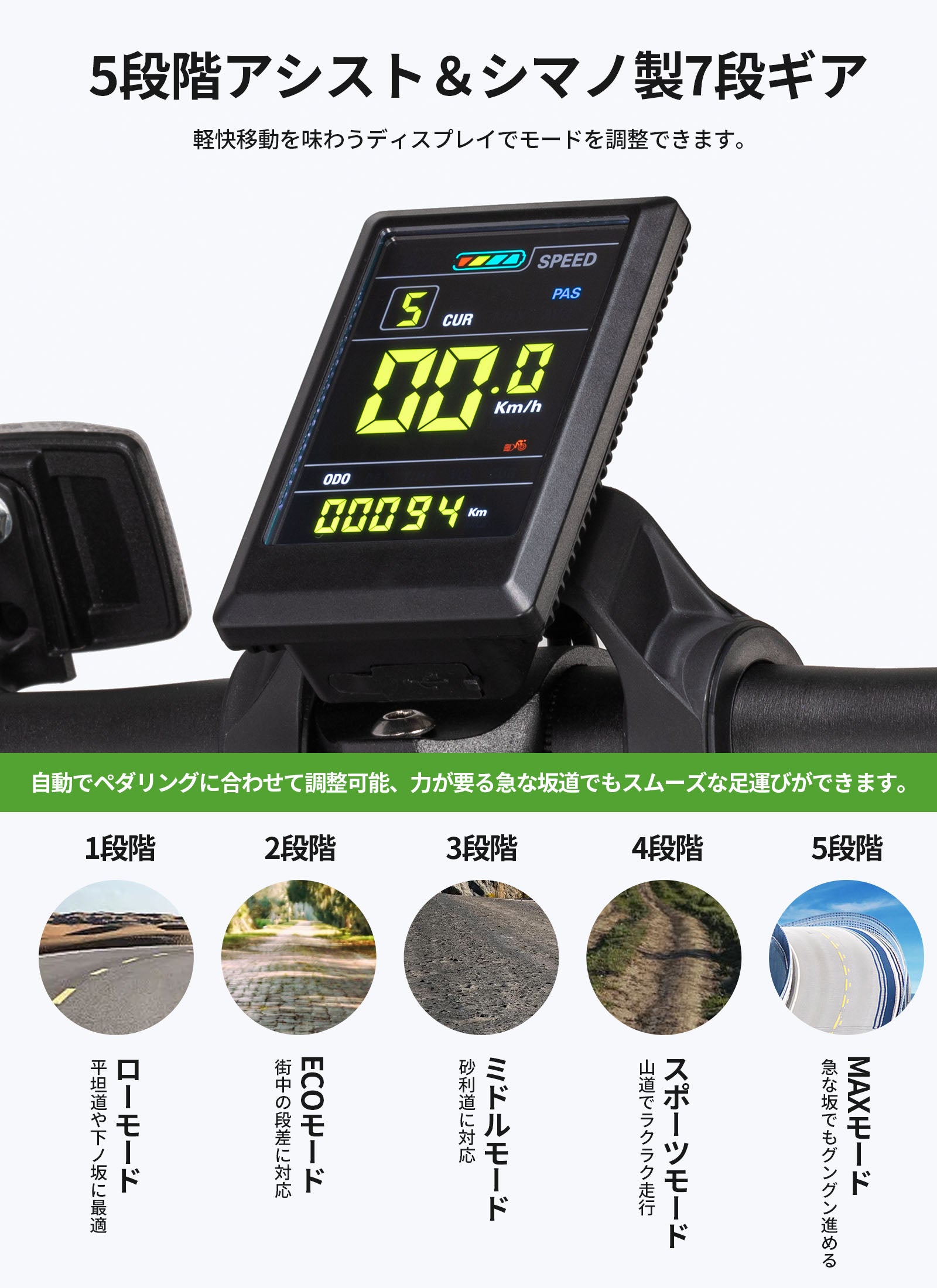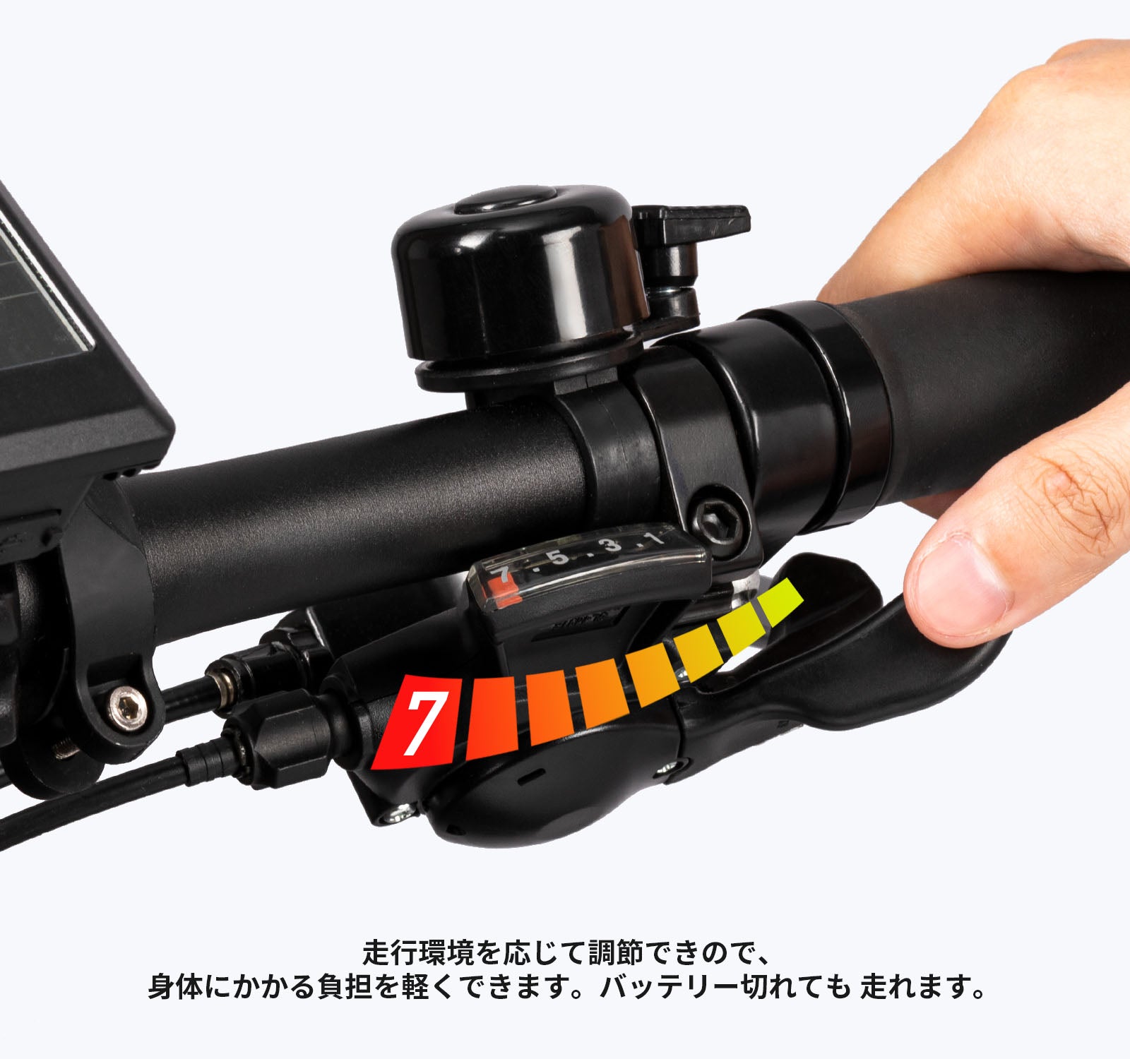 様々な道に応じてお好みのモードを調節することができます。急な坂道でもワンタッチでモードを切り替えて快適に走行します。