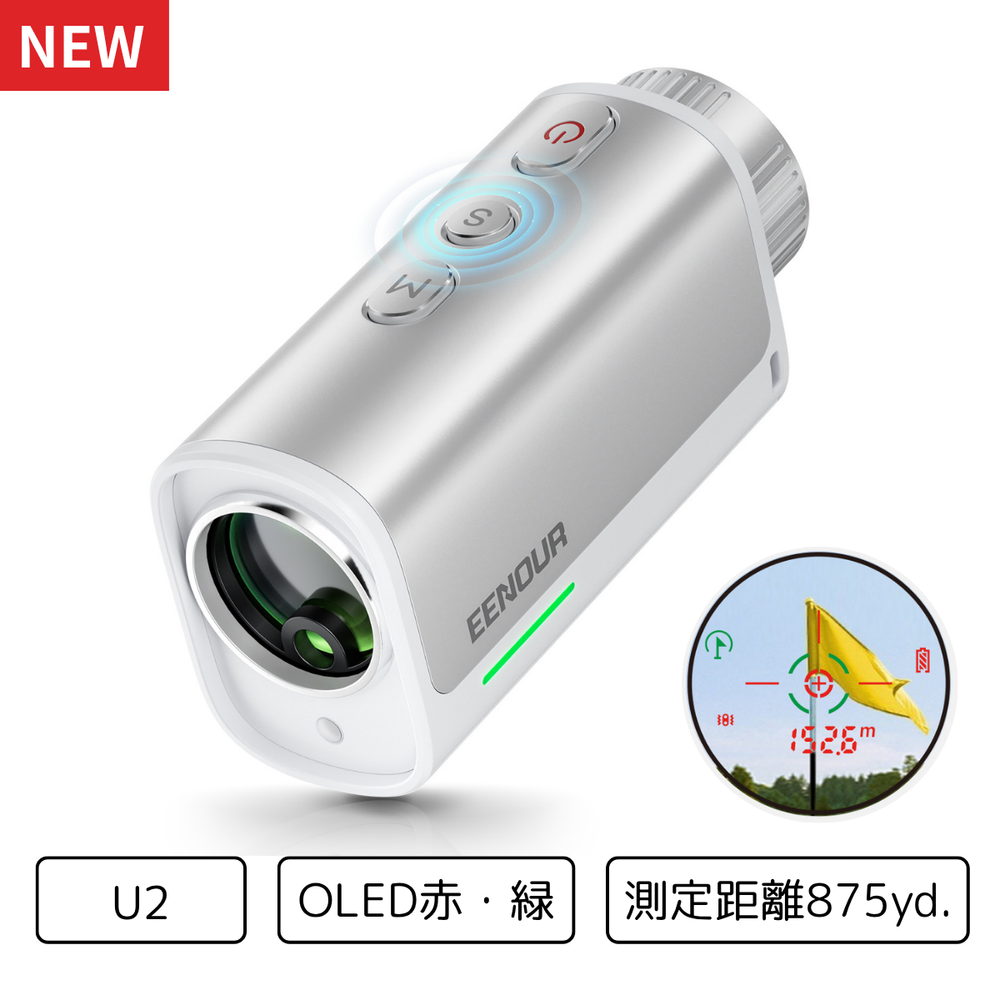EENOURの上位モデル「U2」は、革新的な視認性と操作性を兼ね備えた高性能ゴルフ用距離計です。コンパクトながらプロユースにも応える仕様で、あらゆるプレイヤーに安定した測定体験を提供します。
