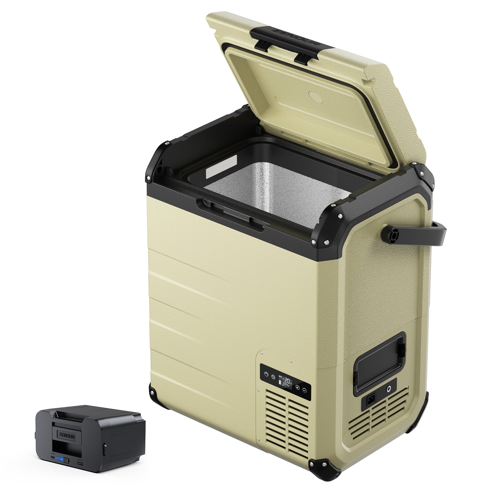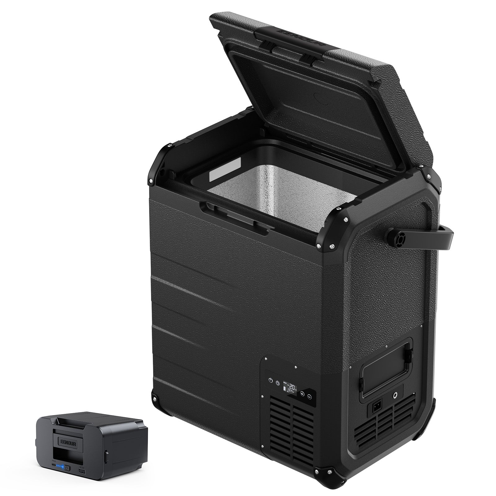 家庭用冷蔵庫と同じく、コンプレッサー方式を採用しているため、気温の高い真夏でもしっかり冷やすことができます。設定温度は-20℃~10℃まで自由に調整可能で、飲料の保冷はもちろん、冷凍食品や氷、アイスなどの保存にも最適です。