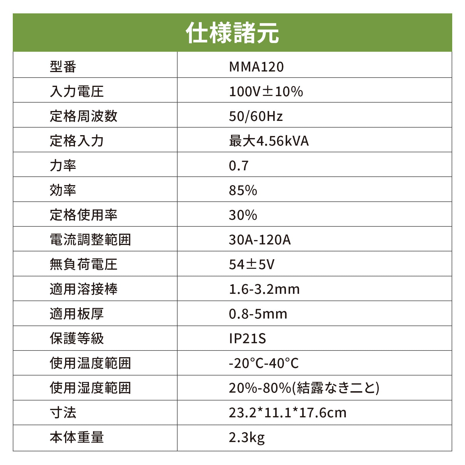 溶接棒径(mm) | Ф1.6~Ф3.2 | |